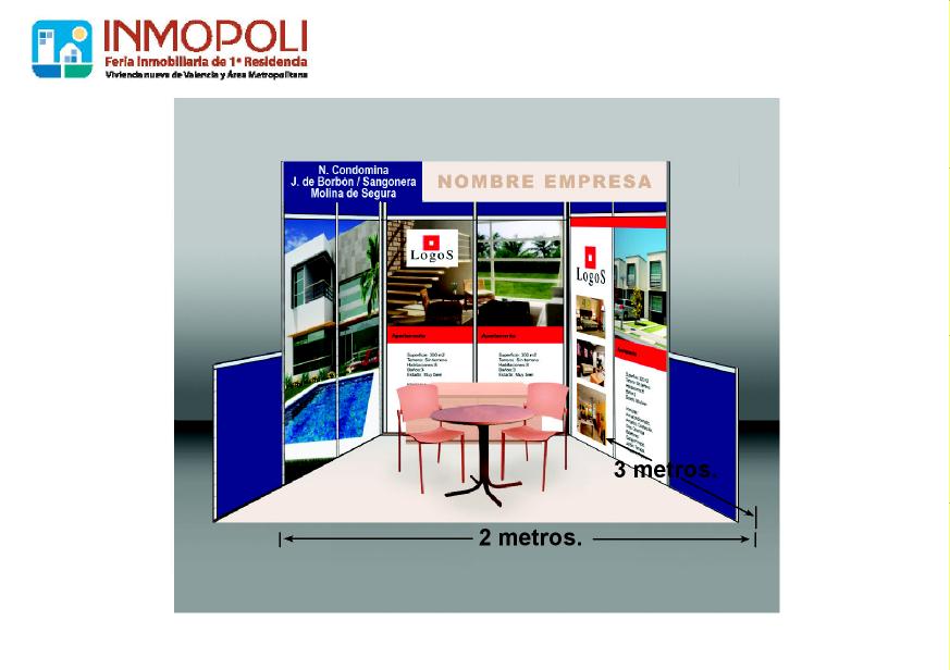 Medidas de aproximadamente 0.96 cms. ancho x 150 cms. alto, adheridas con vinilo a los paneles del stand. En caso de Stands diáfanos, serán con Displays roller.